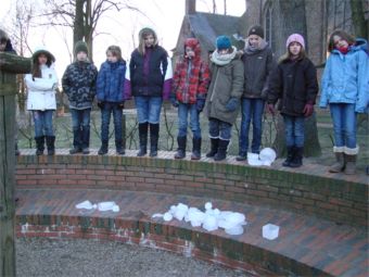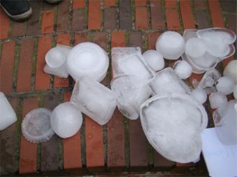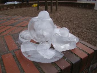 Alle Kinder hatten ihre Hausaufgabe gemacht. Die meisten waren ohne Kühlschrank ausgekommen. In der sehr kalten Nacht gab es Temperaturen bis weit unter -10 Grad C und das Wasser war in den Formen schnell gefroren. Aus der Eisskulptur ist nicht sehr viel geworden, weil es so kalt war, dass die kleinen Hände der Kinder schnell durch gefroren waren. So wurde es eher ein Eisteilehaufen. So gerne wie an diesem Tag ist selten ein Kind in die Klasse gegangen. |
