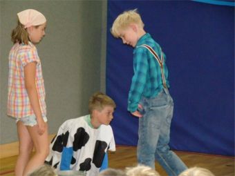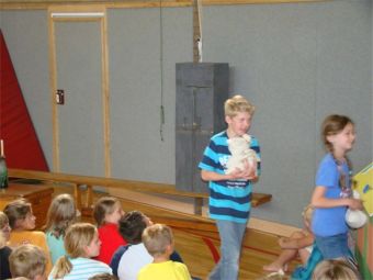 Die OGS an der GGS Veen spielt am 2. Juli 2014 in der Turnhalle der Schule für alle Kinder der Grundschule und den Kindergarten Veen |