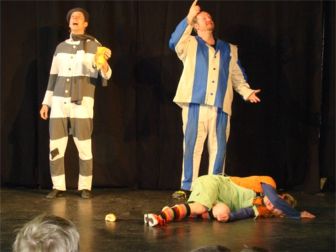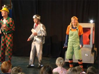 Karacho hält gar nichts davon. Es kommt zum Streit. Jule setzt sich durch, sie schnallt sich ab und springt aus Karacho heraus.Und da muss sie draußen auf der Straße entdecken, dass es ganz schön gefährlich ist und sie keine Ahnung hat, wie sie über die Straße zum Büdchen kommen soll. Im letzten Moment, als sie schon den Fuß auf die Straße gesetzt hatte – natürlich ohne links-rechts-links zu schauen, kommen drei Typen und verhindern eine Katastrophe: Bordo die Bordsteinkante, Plinki die Ampel und Zebro der Zebrastreifen. Drei lustige kernige Gesellen, die – nachdem sie Jule erst mal gerettet haben, letztendlich ihre Freunde werden. Diese drei Typen haben eine Menge zu bieten und zeigen ihr, wie es in der Verkehrswelt zugeht und wie man sich mit ihr anfreundet. Sie überzeugen Jule davon, dass das Leben erst richtig Spaß macht, wenn man sich aus eigener Kraft fortbewegt. Text: Theater Till, Internetseite Fotos: Lothar Bode |