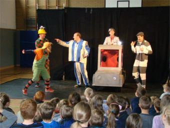 Am 6.5.2014 war das Theater Till mit dem Stück "Abgeschnallt " zu Gast in unserer Turnhalle. Es wurde 2 mal gespielt. Alle Kinder der Wilhelm-Koppers GGS , Menzelen, und der GGS Veen konnten das Stück sehen. Gesponsert wurde die Aufführung vom Verkehrminiterium des Landes NRW und dem Förderverein der Alpener Schulen.