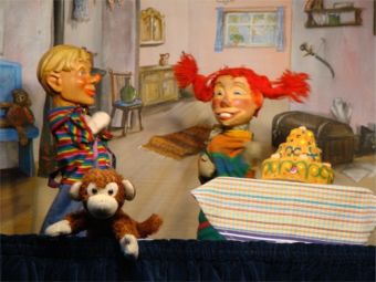 Hilfe der Kinder, die sich ausdrücklich das Puppentheater