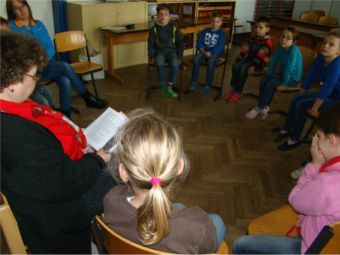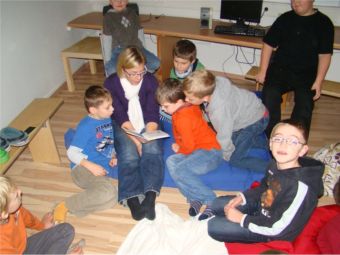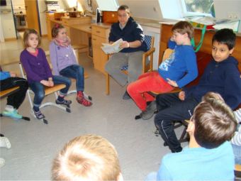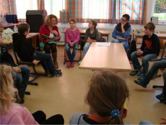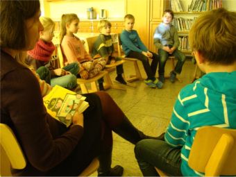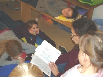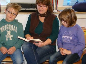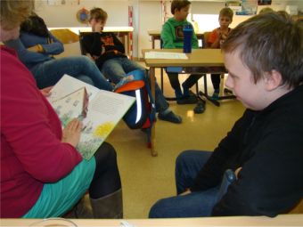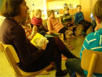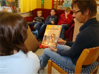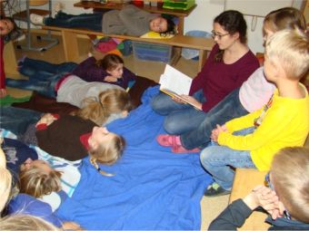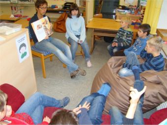 Am 21.11.2014 warten alle Kinder der Schule gespannt auf ihre Vorleserinnen Vorher hatten sich die Kinder in Listen eingetragen. Sie konnten ihr Lieblingsbuch selbst auswählen. Um 10.15 Uhr geht es los. Die Vorleserinnen - Lehrerinnen, Lesementoren, Eltern - gehen mit "ihren Kindern" in einen Raum der Schule, machen es sich gemütlich und entführen die kleinen Zuhörer in die Welt des Buches. |