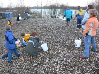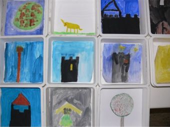 Die Kinder erfahren am ersten Projekttag einiges über die Geschichte des Mosaiks. Sie sehen Mosaike im Bild und im Original. In Gesprächen miteinander berichten die Kinder von eigenen Erfahrungen und Begegnungen mit Mosaiken und mit dem Material. Zur Einstimmung für die folgende Entwurfserstellung lesen wir gemeinsam im Kreis ein Märchen, welches u. a. von Kieselsteinen handelt. Daraus entsteht ein Gespräch über dieses Märchen und die möglichen Motive für einen Bildentwurf. Die Kinder malen dann ein Bild zu diesem Märchen. Um anschließend den Mosaikentwurf zu erstellen, sollen sie mit einem Fenster aus Papier über ihr Bild „fahren“, um einen geeigneten Ausschnitt für ihr eigenes Mosaik zu finden. Ist der passende Ausschnitt mit einfachen Motiven gefunden, wird er in der Größe des Mosaiks aufgezeichnet. An einem weiteren Projekttag machen wir einen Ausflug zum Rhein und zum Kieswerk, um Kieselsteine zu suchen. Hierbei ist es wichtig, dass die Kinder glatte Steine in vielen verschiedenen Farben aussuchen. Wieder in der Schule angekommen, werden die Steine in den Hof gekippt und nach Farben sortiert. Anschließend fertigt jedes Kind einen Stein aus Ton mit seinem Namen. Der Tonstein wird gebrannt und in der darauf folgenden Woche sucht jeder die passenden Steine zum eigenen Mosaikentwurf aus. Diese Steine werden auf dem Entwurf so angeordnet, wie sie nachher gesetzt werden sollen. In einem nächsten Arbeitsschritt, werden die Kieselsteine zusammen mit dem Tonstein in eine trockene Zement-Sand-Mischung gesetzt. Anschließend, wenn genügend Steine im Mosaik und die Formen gut zu erkennen sind, wird das Mosaik so lange befeuchtet, bis die Zement-Sand-Mischung durchzogen ist. Nach einigen Tagen Trockenzeit kann das Mosaik verfugt werden und ist fertig.