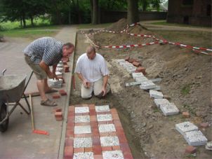 Die fertigen Arbeiten wurden auf dem Schulhofgelände in den Boden eingebaut und können so als Dauerausstellung bewundert werden. Sie dienen als Blickfang und Kunstobjekt der weiteren Verschönerung unseres Schulumfeldes. |