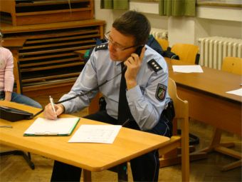 An dieser Station ging es um das richtige Verhalten im Falle von Einbruch, Diebstahl, Unfall und Feuer. Die Kinder lernten, wie man richtig den Notruf absetzt, wie man auf Fragen des Polizeibeamten richtig antwortet und wie man sich auf das Wesentliche konzentriert, damit nicht wertvolle Zeit ungenutzt vergeht. Die Kinder konnten die Telefongespräche mehrfach ausprobieren. Am anderen Ende - in der Notrufzentrale – saß immer Polizeioberkommissar Küppers. Das Verhalten der Kinder wurde anschließend reflektiert. Wichtige Grundregeln wurden gelernt. |