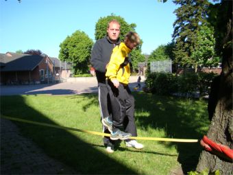 Slackline und Pedalo Die Kinder haben an dieser Station erfahren, was Gleichgewicht ist, wozu man es braucht und wo sich unser Gleichgewichtsorgan im Körper befindet. Durch verschiedene Angebote konnten sie ihr Gleichgewicht trainieren. Sie konnten auf einer Slackline (übersetzt: die Leine, die viel Durchhang hat oder lockere Leine) balancieren. Ihre Haltungs- und Bewegungskoordination sowie ihr Reaktionsvermögen auf verschiedenen Pedalos (Pedalo Classic, Pedalo-Sport und Pedalo- Surf) üben. |