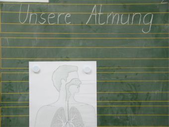 Wie funktioniert Atmung? Wir spüren, wo und wie sich in unserem Körper beim Atmen etwas bewegt. Wir zählen während einer Minute unsere Atemzüge sowohl in Ruheposition als auch nach Bewegung und vergleichen: Wir atmen nach Anstrengung schneller – Erwachsene atmen langsamer als Kinder Wir messen den Brustumfang aus- und eingeatmet: Luft macht unseren Brustkorb weiter. Wir testen, wie viel Liter Luft wir in einem Zug ausatmen können. Wir schauen an einem Körpermodell, welche Organe an der Atmung beteiligt sind und beschriften diese an einer Abbildung. |