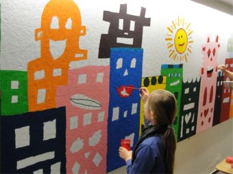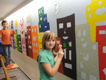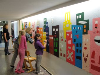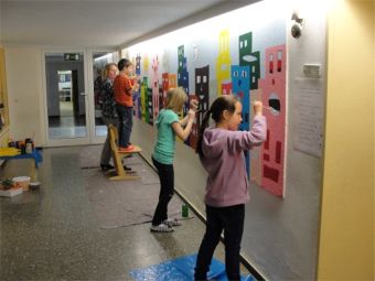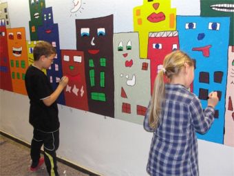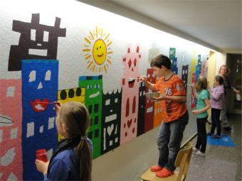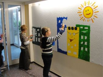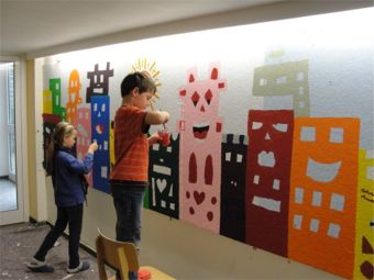 Rizzis Bilder sind unverwechselbar, spiegeln die Freude wieder, die er am Leben hatte, und thematisieren das Leben der Menschen in New York. So malt er oft Hochhäuser, Menschen und Autos. Sonne und Mond sind in fast jedem seiner Bilder zu finden. Rizzi will Bilder schaffen, die Spaß und Freude verbreiten und schön anzusehen sind. Im Flur vor unserer Klasse bemalten wir eine große Pinnwand mit Rizzi-Häusern. Als Inspiration nahmen wir das Bild „CITIES DON´T SLEEP, BUT THEY WILL WEEP, SMILE, LAUGH AND CRY AND SAY GOOD-BYE TO A CHANGING SKY“. |