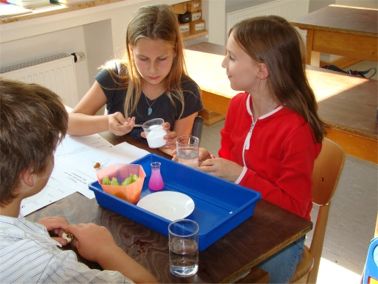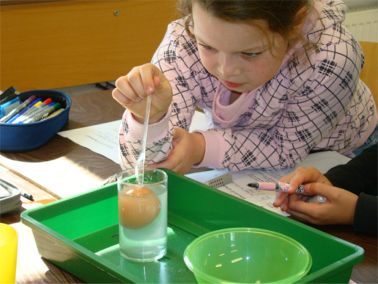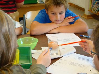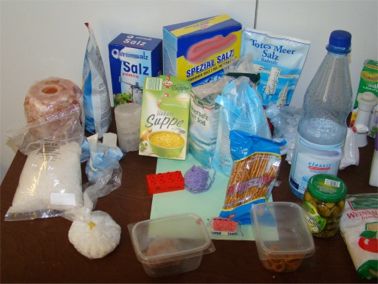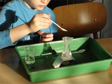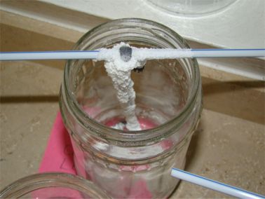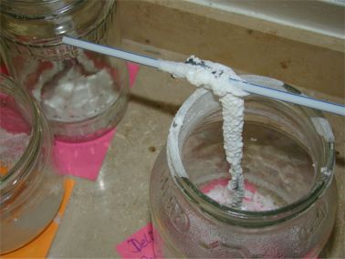 haben wir einen Streifen T-shirt-Stoff in Salzlösung gehängt.