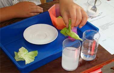 Salatblatt aus dem Salzwasser ist nach kurzer Zeit schlaff.